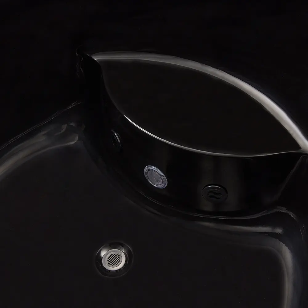 Для удобства пользователя предусмотрено внешнее отображение температуры, позволяющее контролировать параметры воды перед погружением. Три форсунки обеспечивают мягкую циркуляцию и массажный эффект, а LED‑подсветка создает расслабляющую атмосферу. Наличие перелива и продуманной дренажной системы гарантирует безопасность эксплуатации и защиту от переливания воды через борт.