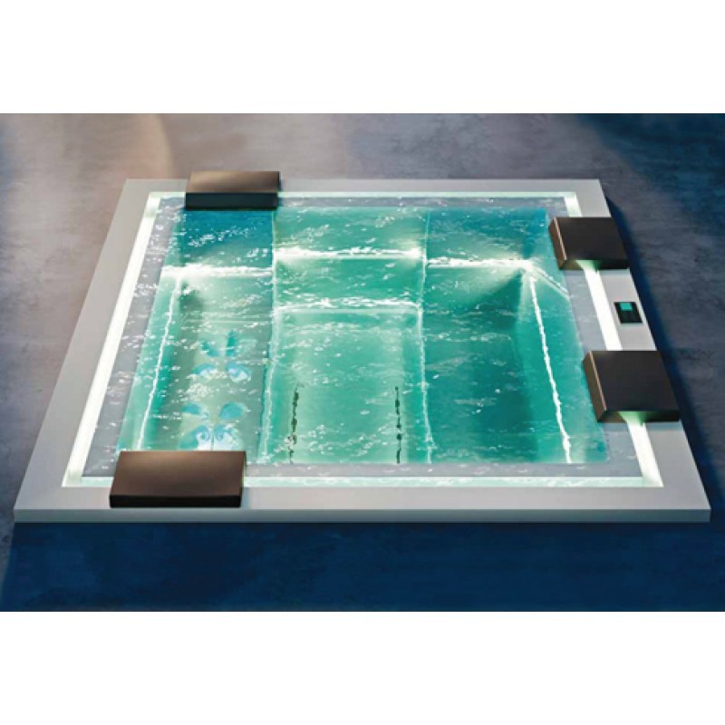количество мест - 6 лежачее место - Нет чаша бассейна из материала Crystaltech© металлический каркас 24 верхних гидромассажных форсунки Ghost System 16 нижних гидромассажных форсунок Ghost System дополнительные 24 аэромассажные форсунки на дне (опция) дополнительные 47 аэромассажных форсунок на сиденье (опция) 2 гидромассажных насоса 3 л.с и 1,7 л.с. хромотерапия по периметру из одиночных светодиодов для верхнего гидромассажа электронагреватель 3 кВт с регулятором температуры пульт управления бассейном с ЖК дисплеем картриджная система фильтрации датчик уровня компрессор 2,2 кВт (опция) хромотерапия по периметру из одиночных светодиодов для нижнего гидромассажа (опция) система озонирования (опция) подголовник (опция) боковые панели (опция) теплоизолирующая крышка-чехол (опция)
